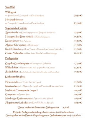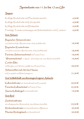 die auf unserer Tageskarte oder auf der Tafel im Gasthaus ausgeschrieben werden.